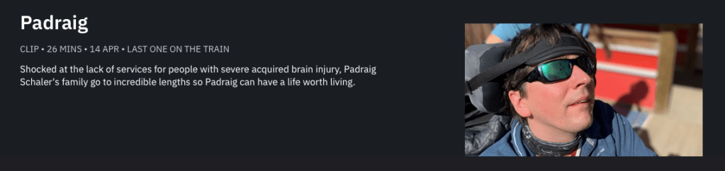 A series broadcast on RTÉ Radio One that tells the personal stories and day-to-day experience of 6 young wheelchair users in Ireland and captures the humour, the personalities and the colour of the lives of the people who feature, none of whom set out to become disability advocates but had no choice.