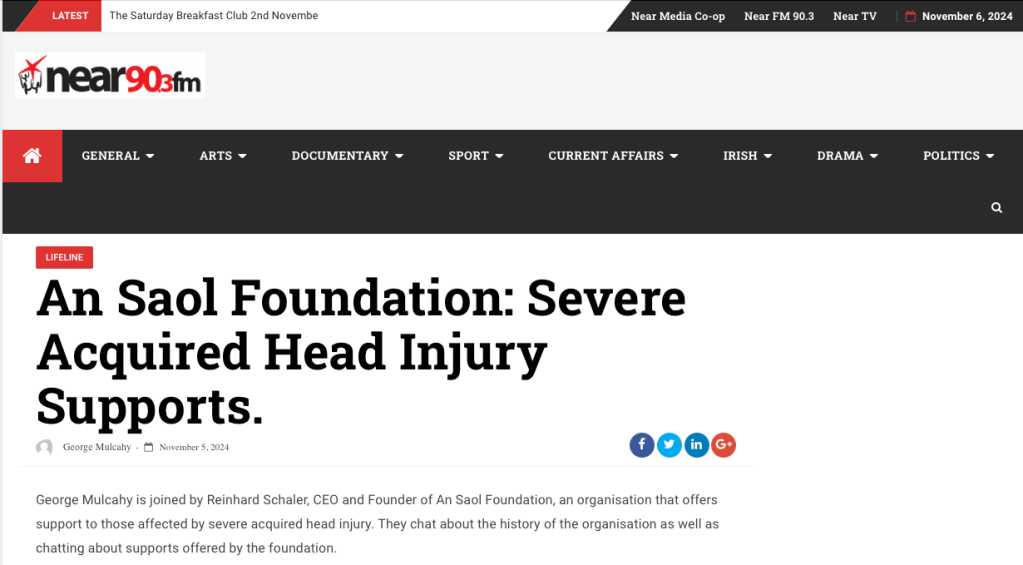 George Mulcahy of Near 90.3fm radio is joined by Reinhard Schaler, CEO and Founder of the An Saol Foundation. They chat about the history of the organisation as well as chatting about supports they offer.